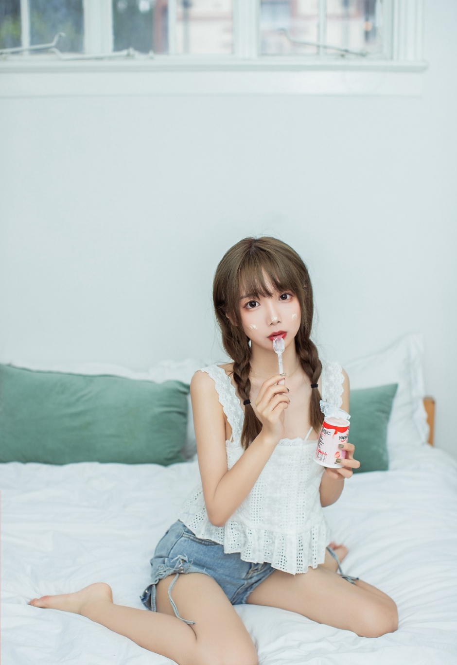 大长腿小脸美女牛仔短裤居家生活照(3)
