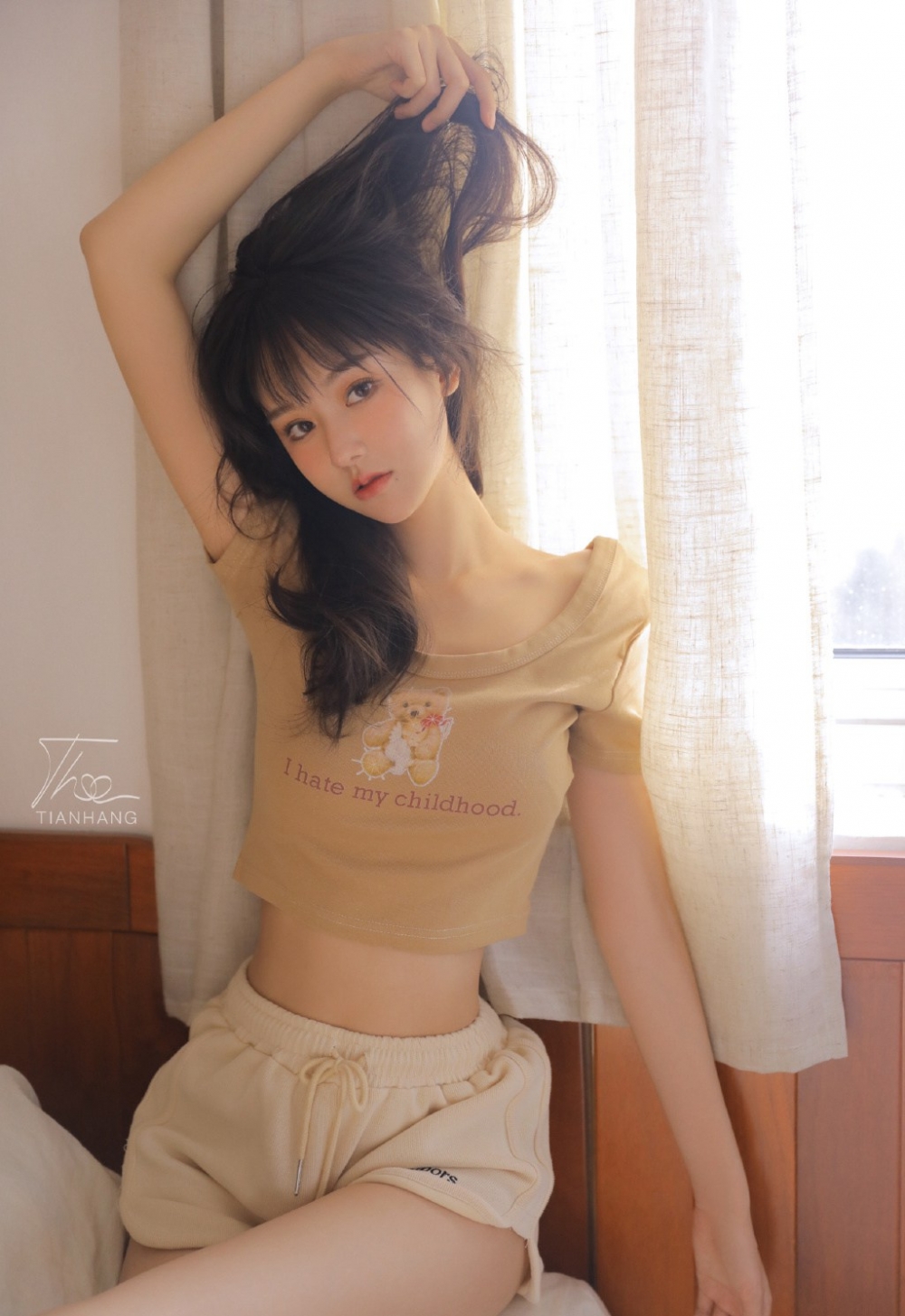 气质清新脱俗的大眼美女吊带短裤迷人私房照